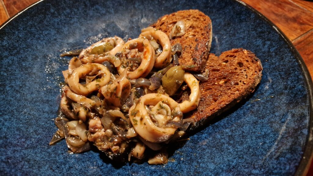 Ah, un consiglio! Quando acquistate le seppie, preferite le femmine, che, oltre al gustosissimo fegato e all’inchiostro da utilizzare con gli spaghetti, hanno all’interno le sacche ovariche, due palline bianche che, fritte, sono una vera prelibatezza.