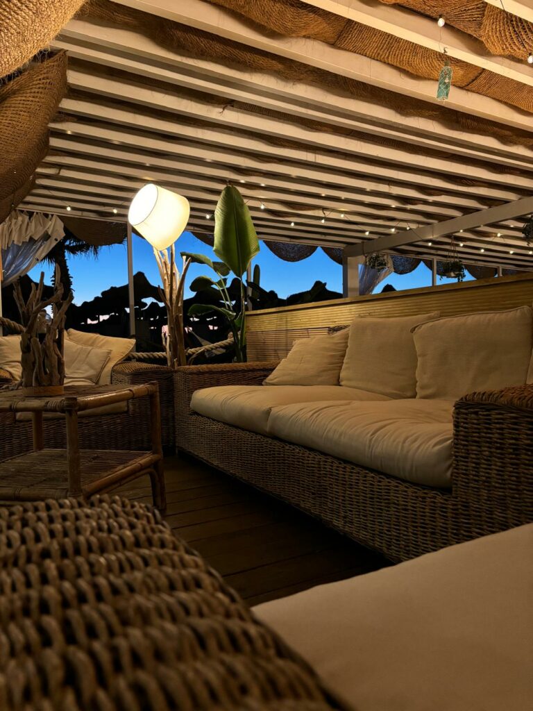 Essendo interessata al bello, oltre che al buono, vengo innanzitutto rapita dalla installazione del tetto del chiringuito, fatto da tanti coni di paglia d’Africa. È tutto al naturale, con colori che parlano di silenzi immensi e fanno venir fuori soltanto il rumore della natura: dalle distese di sabbia mista a scogli che hai davanti agli occhi al verde intenso che sai di avere alle tue spalle ai profumi delle essenze mediterranee portati dalla brezza marina fin nelle tue narici. Qui sembra che il tempo si sia fermato. È proprio così, è come se qualcuno ti dicesse: “lascia tutto e prenditi cura di Te e di ciò che davvero è importante”.