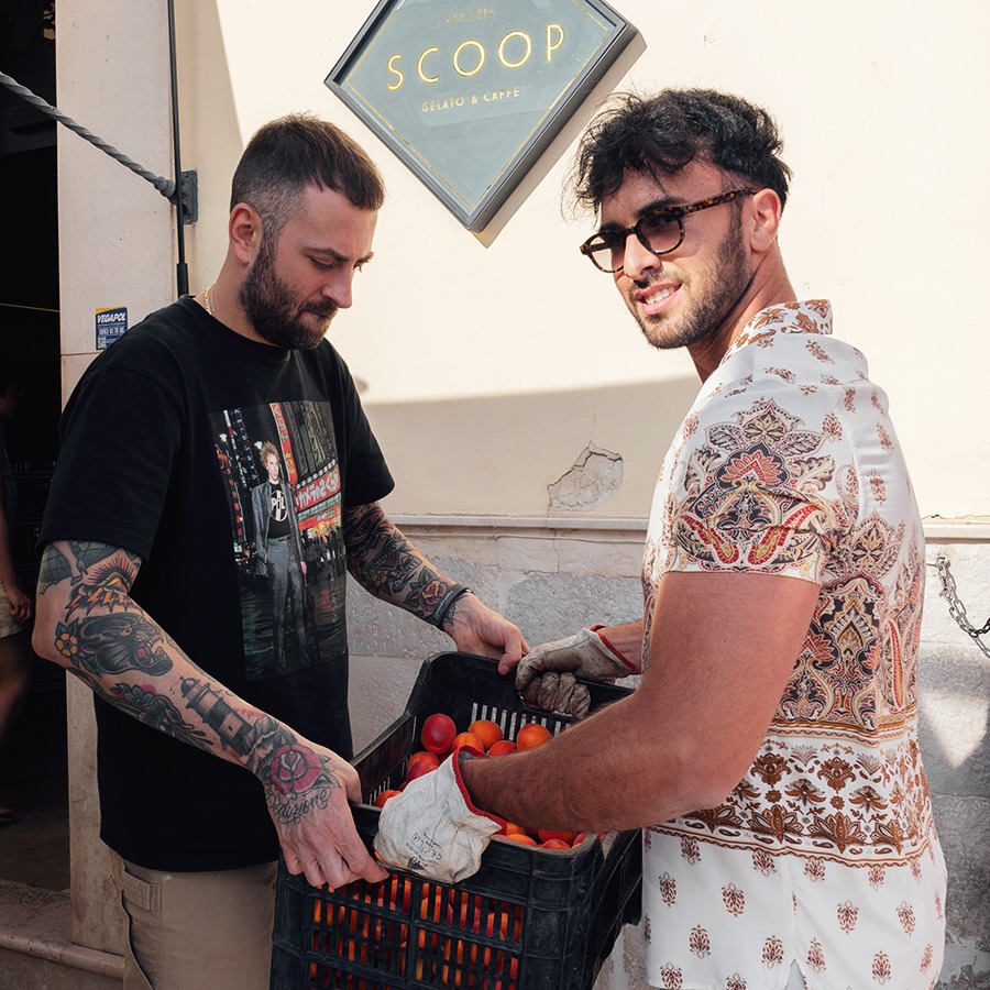 Per raccontare Scoop Gelato e Caffè bisogna partire da un assaggio: un cucchiaino di Crema cannella, “quella del Bar Rosa”. È da questo gusto che inizia il racconto di una storia, giunta alla quarta generazione, incastonata nel cuore della provincia BAT, a Canosa di Puglia. Questa gelateria, che oggi attira visitatori da tutto il nord barese e non solo, ha fatto del suo banco a pozzetti un punto d’incontro tra passato e futuro. Dietro il bancone ci sono Francesco Di Nunno e il suo socio Marco Di Sibio. Nel 2016 Francesco decide di rilevare il bar di famiglia, il Bar Rosa, noto in città proprio per il gelato al caffè e questa crema all’uovo aromatizzata alla cannella (nonché per lo spumone che unisce i due gusti). Obiettivo: provare a portare in città un prodotto diverso, frutto di ricerca, ragionamento, memoria e piacere.