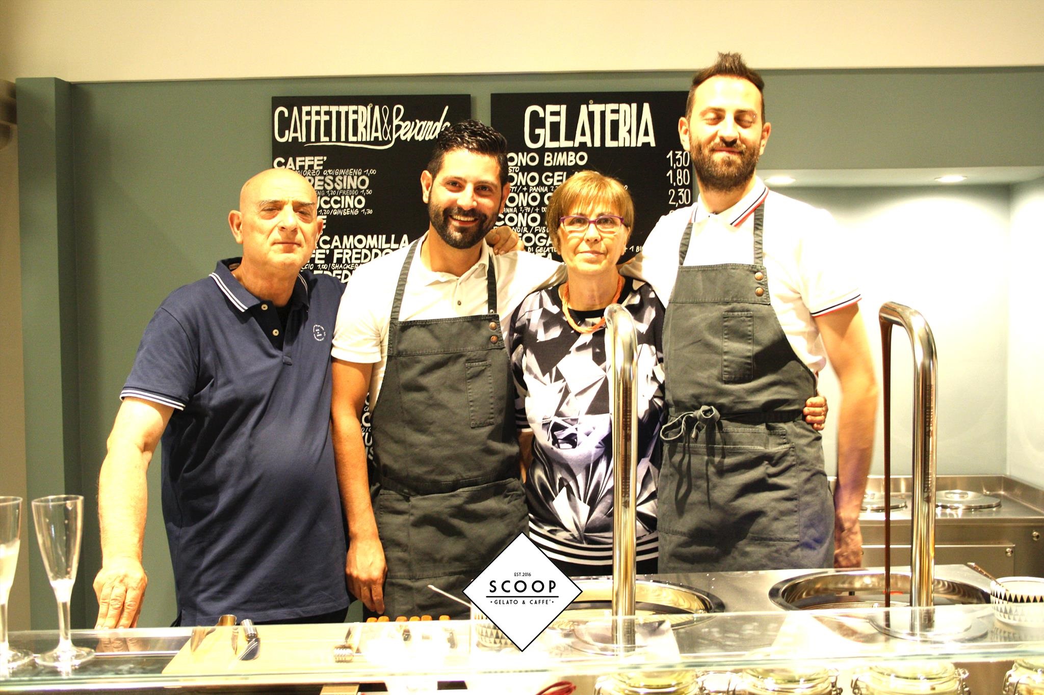 La storia di Scoop inizia in piazza della Repubblica negli anni Quaranta. Qui sorgevano due bar: il SantAngelo e il Caffè Bovio. In quest’ultimo lavorava il bisnonno di Francesco, Michele Di Nunno. Nel bar SantAngelo c’era invece quella che sarebbe diventata sua moglie, Maria Santganelo. La morte prematura di quest’ultima lo spinge a risposarsi e a chiudere Caffè Bovio, mandando il figlio Francesco a lavorare nel bar SantAngelo. Morti i proprietari originari, Francesco rileva l’insegna. Tramandato di padre in figlio come un gioiello di famiglia, il nonno di Francesco, suo omonimo, dà un nuovo nome al locale, chiamandolo Bar Rosa, forse per scrollarsi di dosso la fama che quell’insegna aveva in passato o forse per cercare di scrivere una storia nuova. Il Bar Rosa dà da mangiare a tutta la famiglia di Francesco. Padri e figli lavorano insieme, anche se uno di questi, Michele (il papà dell’attuale proprietario) ha una laurea in tasca e per quarant’anni continuerà ad alternare il lavoro al bar con la cattedra d’inglese. Nel 1999 l’entusiasmo della famiglia Di Nunno per il Bar Rosa sembra affievolirsi. Si parla di vendere. Sullo sfondo, anche se ancora per poco, c’è Francesco, che in quel laboratorio è cresciuto imparando ad amare il gelato.