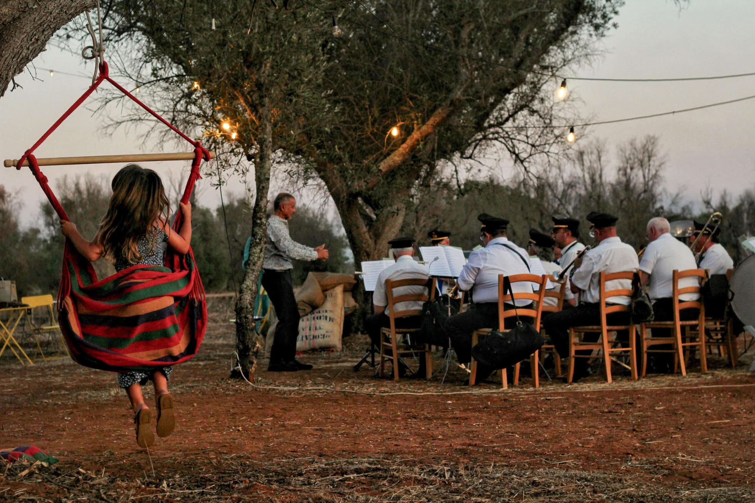 Già nel 2012, con il programma Bollenti Spiriti promosso dalla Regione Puglia, il gruppo aveva avviato un laboratorio urbano per sperimentare nuove pratiche di uso del territorio. Tra il 2012 e il 2017 è nato così l’olio “Terre dei Paduli”, prodotto da ulivi abbandonati che i proprietari concedevano gratuitamente. «Andavamo a raccogliere olive da campagne che nessuno voleva più coltivare. Per i proprietari era un peso, per noi un modo di ridare valore a quelle terre», ricorda Giorgio. In passato, nella zona, era consuetudine raccogliere le olive cadute a terra, ottenendo oli lampanti, tipici di un’epoca in cui l’olio era destinato soprattutto all’illuminazione. L’esperienza dei Paduli ha invece voluto invertire questa tendenza, trasformando uliveti trascurati in fonte di un extravergine di qualità. Parallelamente, il gruppo ha sperimentato forme di ospitalità leggera, come installazioni artistiche e glamping nell’uliveto pubblico, rafforzando così la fruizione culturale del paesaggio.