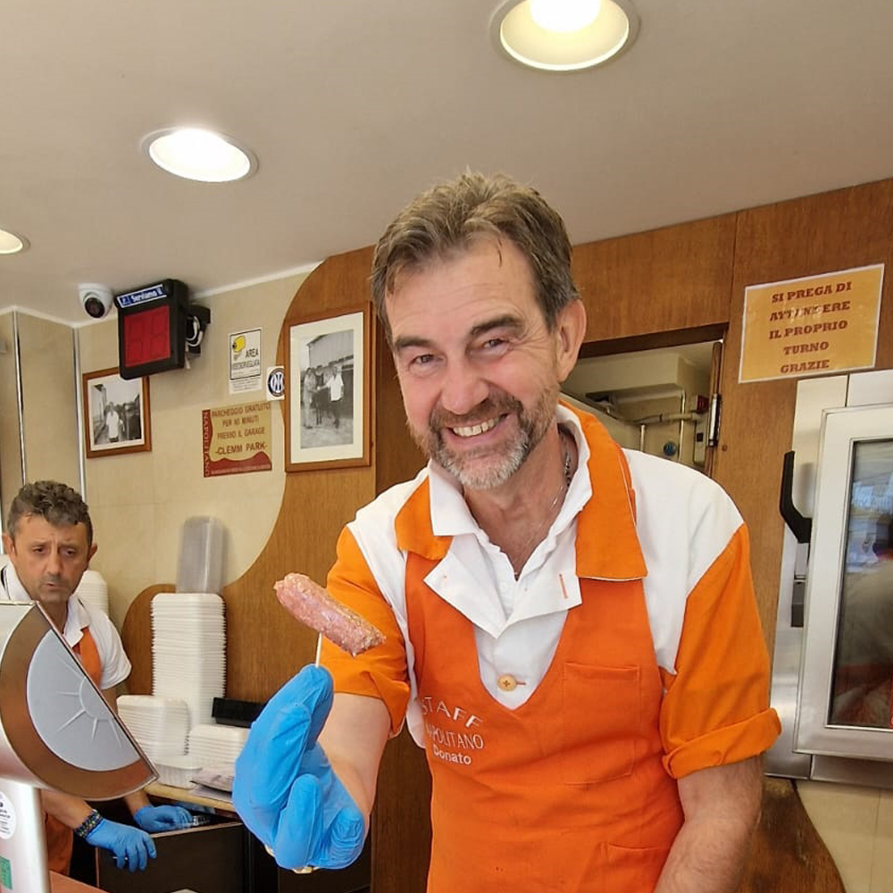 Lo definirei cibo da bottega, è una cosa che potrete gustare soltanto dal vostro macellaio di fiducia e, dirò di più, è lì che trasmette la poesia del gesto, un po’ come i ricci e le cozze mangiati “ngànne a mare” (vicino al mare) o la frutta raccolta e assaporata direttamente in campagna all’ombra dello stesso albero.
