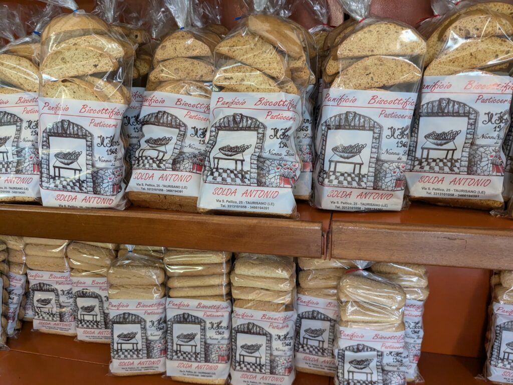 La produzione del Forno 1968 Nonna Licia è un vero e proprio viaggio attraverso i sapori più autentici del Salento, ricercati non solo dai turisti ma soprattutto dai “locals” alla ricerca del prodotto genuino. Nonostante le innovazioni, il successo del forno è legato indissolubilmente ai suoi classici, prodotti il cui gradimento resta elevatissimo e che rappresentano il prodotto da forno salentino in tutto e per tutto. I pilastri invariati della produzione sono il fragrante Pane Salentino: preparato rigorosamente con semola rimacinata di grano duro locale, si distingue per la crosta croccante e la mollica alveolata. Le immancabili Frise, integrali o classiche, simbolo della gastronomia estiva salentina e pugliese; le Pucce, morbide pagnottelle insaporite con olive nere, veri e propri simboli dello street food salentino. E poi i Biscotti da Latte, Biscottoni della Salute, Taralloni con lo Zucchero, Pastarelle da Latte, ovvero tutte le ricette di Nonna Licia per la colazione, che continuano a riscuotere un successo immutato. Inoltre, la nuova gestione ha saputo ampliare l’offerta con una pasticceria secca di alta qualità, reinterpretando le ricette regionali in chiave moderna e introducendo nuove specialità: i Biscotti con le Mandorle, il vero “cavallo di battaglia”, la cui ricetta fu generata proprio da Nonna Licia. Qui, quando possibile, la “mandorla regina” è quella barese. Poi i deliziosi Abbracci, una delle innovazioni di papà Luigi: frollini all’arancia che, dopo la cottura, vengono inzuppati nel cioccolato fondente; e infine le Forme di Cioccolato: altra specialità distintiva che sono diventate, nel forno, validissimi sostituti dei più classici panettoni e pandori durante il periodo natalizio.