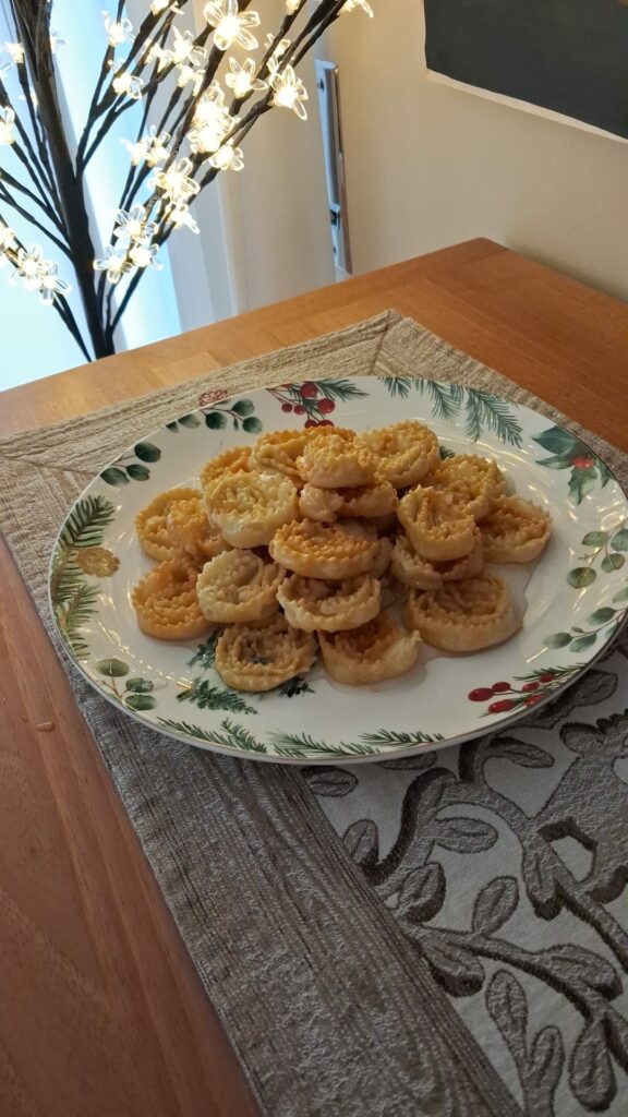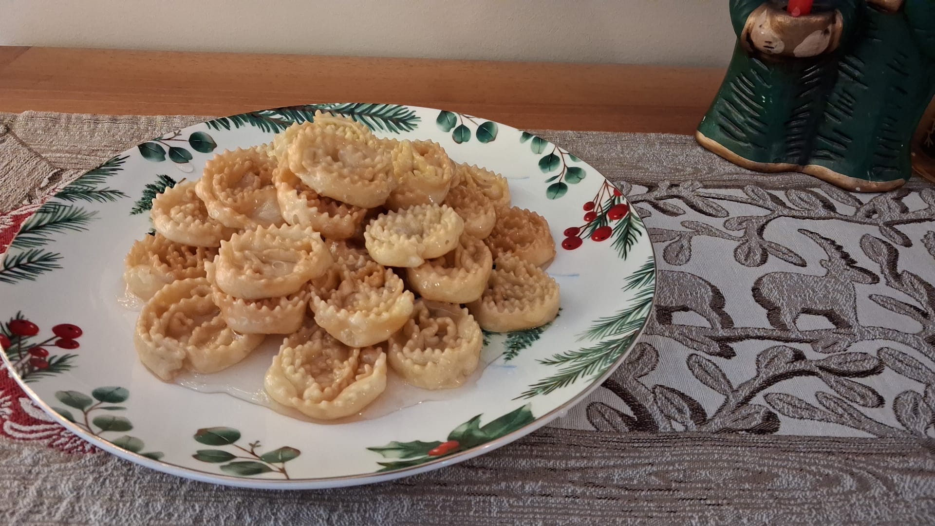 Dicembre è quel mese dell’anno in cui in Puglia, soprattutto in determinate cucine pugliesi, si rivive il culto della tradizione, realizzando dolci tipici che raccolgono storie che profumano di vita vissuta. Impastare, friggere, sfornare e stendere, mani che si intrecciano e sorrisi che avanzano nel preparare i dolci che accompagnano le tavole dei pugliesi durante i giorni delle feste natalizie. Senza alcun dubbio le cartellate sono il dolce simbolo di questo periodo, in dialetto sono conosciute con il nome di “carteddàte” hanno un aspetto che ricorda una rosa e sono friabili e croccanti, si distinguono per la presenza di bollicine sulla superficie dovuta alla frittura della sfoglia, che viene accompagnata in fase di cottura dal vino bianco. In Basilicata le chiamano “crispedde” e in Calabria sono note come “crispelle”. Le cartellate sono legate alla tradizione cristiana, infatti, questi dolci rievocano nella forma tipica ad aureola le lenzuola di Gesù Bambino, ossia le fasce con cui fu avvolto nella culla, ma anche la corona di spine che cinse il suo capo nel momento della crocifissione.