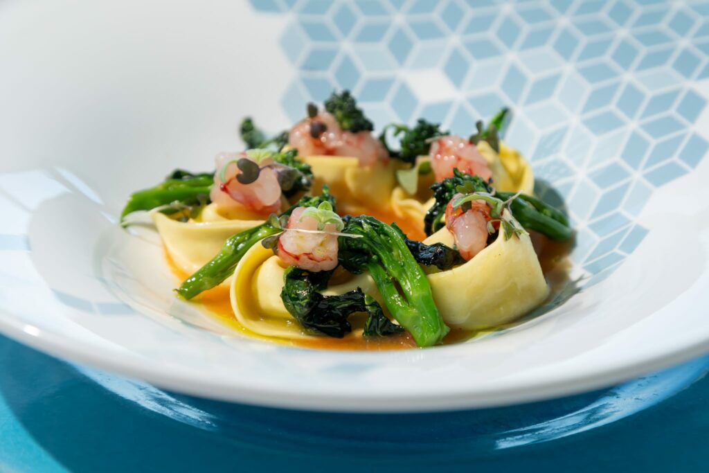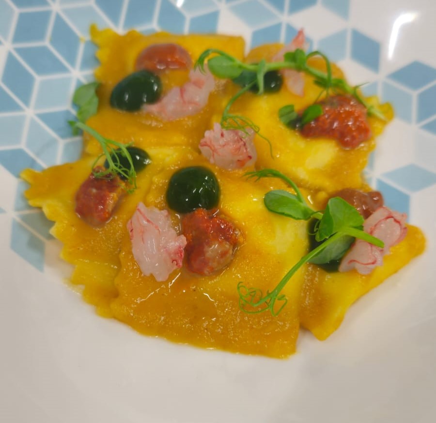 Il mare comunque si materializza nei piatti, che riescono a riprodurne tutta la freschezza e tutti i profumi, come può ampiamente dimostrare la ricca scelta degli imperdibili crudi. Un attimo prima di procedere con i cavalli di battaglia della casa, che vanno dalla deliziosa chicca delle cozze “alla Pipina”, e cioè marinate in pinzimonio con cipolla e pepe e accompagnate dal provolone; fino ai tubetti rigati conditi con il sugo di scorfano, e agli spaghetti spezzati in brodo di pesce bianco. Si tratta in definitiva di un trionfo delle stagionali ricette della tradizione autoctona, che trovano valido riscontro nel gusto sincero dello sgombro scottato con cornaletti fritti, fave in due consistenze e cipolla in agrodolce. La brigata ai fornelli non perde però l’occasione per misurarsi con qualche variazione sul tema, o con qualche operazione di più spinta creatività. Tra gli spaghetti all’assassina di polpo, che recuperano con ironia una moda corrente, e la sperimentazione delle potenzialità delle paste ripiene. Ovvero i tortelli farciti di burrata e maggiorana con bisque di gamberi rossi, tartare di gamberi rossi e mugnoli; e la valida alternativa dei ravioli farciti di stracchino e tartufo nero con vellutata di pomodori gialli, riccio, tartare di gamberi rossi, e gocce di gel al basilico. Magari per regalare un tocco cromatico alla gradevolissima esperienza gastronomica.