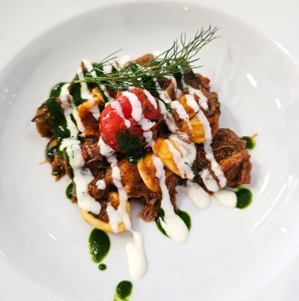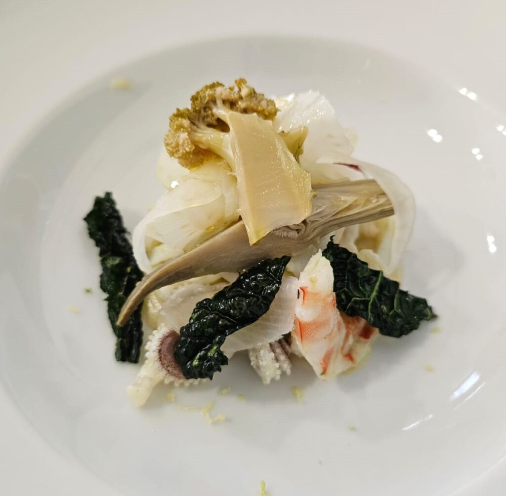La professionalità di Lele e Daniele comunque non è improvvisata, al contrario è il frutto di una lunga esperienza giovanile all’estero, il primo ai fornelli e il secondo in sala. Il tutto fino al fatidico duemiladieci, quando entrambi sono tornati a casa (anche per volontà della mamma) e hanno iniziato a gestire un localino nel centro storico. Molto suggestivo ma forse troppo piccolo, tanto da indurli a trasferirsi in una zona piuttosto periferica della città, che ormai da qualche anno fa da cornice all’attuale sede. Si entra dunque nei luminosi e moderni ambienti interni, con ampie vetrate, cucina a vista, e un gazebo per il dehors estivo; e resi particolarmente vivaci dalla presenza di tanti commensali, anche all’ora di pranzo di un qualsiasi giorno feriale. Un tono di disinvolta cordialità si registra nell’accoglienza dello stesso Daniele, con il valido supporto dell’esperta sommelier Valentina Antini, i cui meditati abbinamenti enologici accompagnano e valorizzano le creazioni gastronomiche di Lele. Davvero creazioni, perché lo chef lavora sostanzialmente sul recupero della tradizione, riuscendo tuttavia a renderla gentile, leggera ed elegante, attraverso appropriate tecniche di esecuzione e di presentazione.